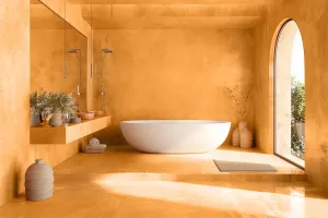 Betonová stěrka od firmy EPODEX, ve spojení s naším těsnicím materiálem z polyuretanové pryskyřice (PU), nabízí vodotěsnost a odolnost vůči povětrnostním vlivům. Je optimální volbou pro sprchy a exteriéry. Po vytvrzení betonové stěrky následuje aplikace těsnicí vrstvy, kterou si můžete přizpůsobit podle svých preferencí, ať už upřednostňujete matný nebo lesklý povrch tmele.