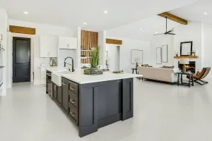 - Unmittelbar nach dem Anmischen das Material auf den Boden gießen und mit einer Flächenrakel gleichmäßig verteilen. Anschließend mit einem Gummiabzieher nacharbeiten, um das Design zu erzeugen.