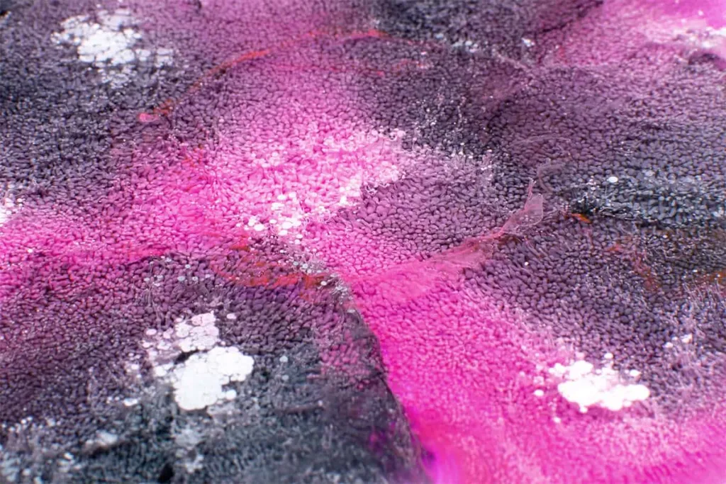 - Hæld harpiks-hærderblandingen på den ønskede overflade eller i den ønskede støbeform. Til den typiske alkoholblækeffekt ("Petri-Art-Effect") anbefaler vi en maksimal skænkehøjde på 1,5cm.