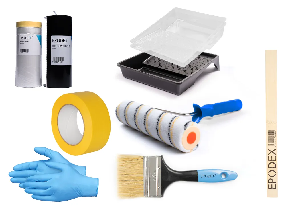 - Sørg for, at underlaget er rent og fedtfrit. For at gøre dette anbefaler vi at bruge EPODEX PRE-CLEANER.