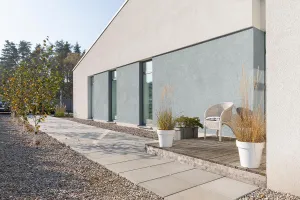 2. Nuestra pintura exterior premium es apta para todas las superficies minerales estables, como revoques exteriores (MG PII, PIII), hormigón, ladrillo, hormigón celular, recubrimientos antiguos y pinturas de silicato.