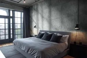 Imádjuk a hálószobánk új kinézetét! A látszóbeton hatású festék otthonos, modern textúrát adott. A felvitelhez kellett egy kis gyakorlat, de az eredmény stílusos és időtálló – mindenképp megérte.