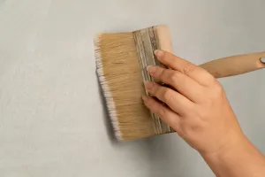 - Nałóż pierwszą warstwę Limewash farby wapiennej pędzlem z drobnym włosiem.