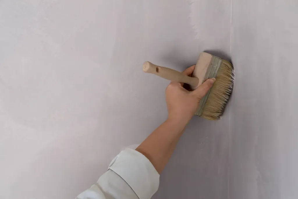 - Aplique a primeira demão de Limewash com um pincel de cerdas finas.