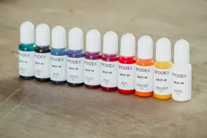 Kvapkové farbivá EPODEX zachovávajú priehľadnosť vašej živice. Každá 10g fľaštička je vybavená dávkovačom kvapiek pre jednoduché použitie. Všetky kvapkové farby sa riadia zákonom teórie farieb a môžu sa navzájom miešať (napr. žltá a modrá vytvárajú zelenú).